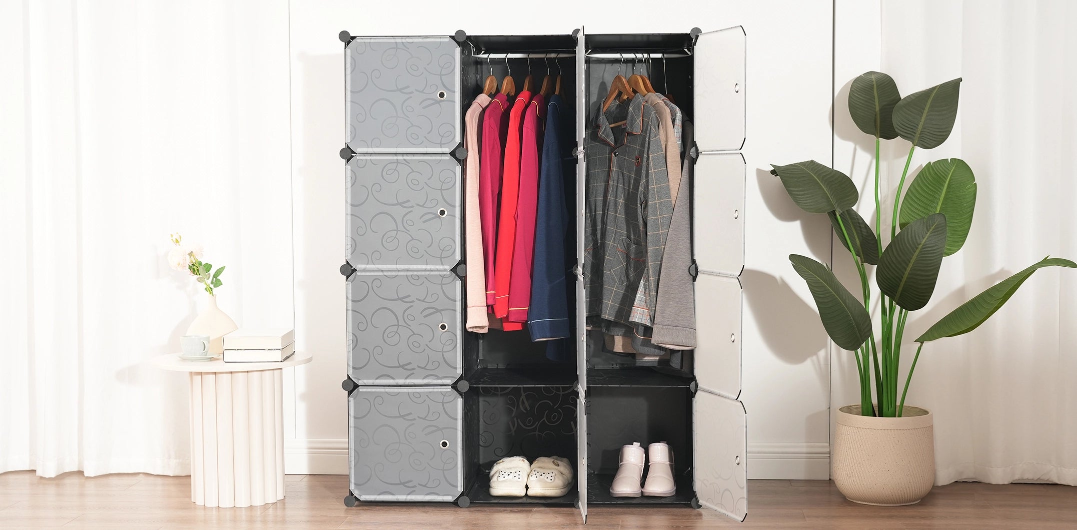 ANTSUN Portable Wardrobe with 12/16 Cube Closet Storage Organizer