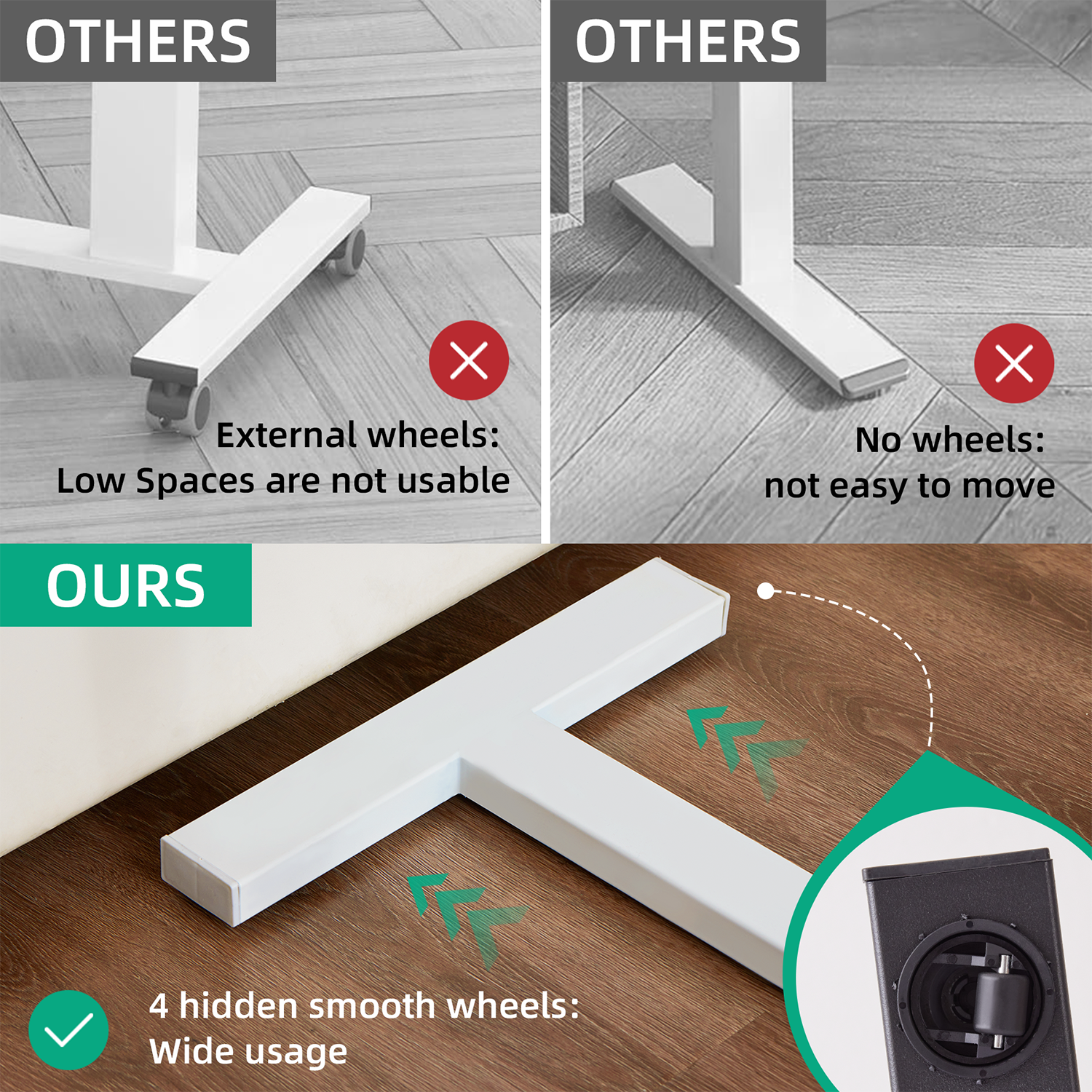 - H-shaped Base Frame: Designed for stability, our desk boasts a sturdy H-shaped base frame to prevent tipping or shaking, with a sleek and modern aesthetic.